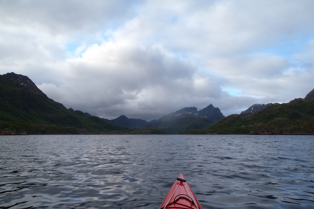 Inne i fjorden ventet en regnbyge, og jeg angret etterhvert på at jeg ikke tok dopause lenger ut i fjorden. Av med tørrdrakt og greier blir ekstra styr når det er vått. Men det var ikke så vått som det så ut for.